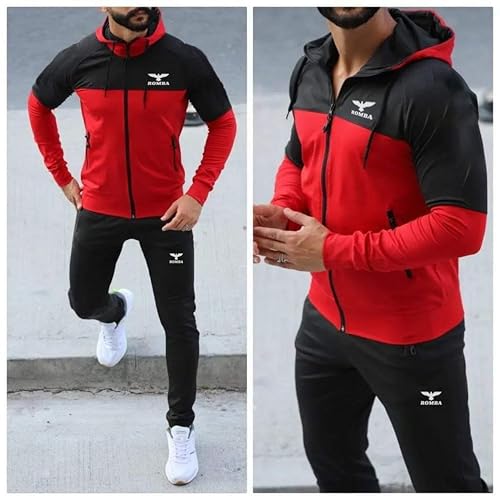 ترينج رياضي رجالي من ROMBA - بدلة رياضية مريحة وعصرية ، تصميم أنيق بغطاء رأس وسحاب أمامي - ترنج رياضي كاجوال ثقيل للشباب والرجال من رومبا