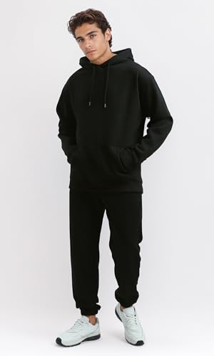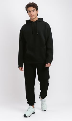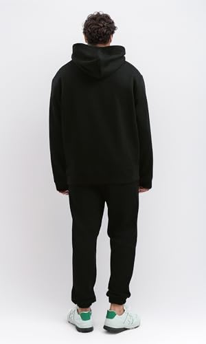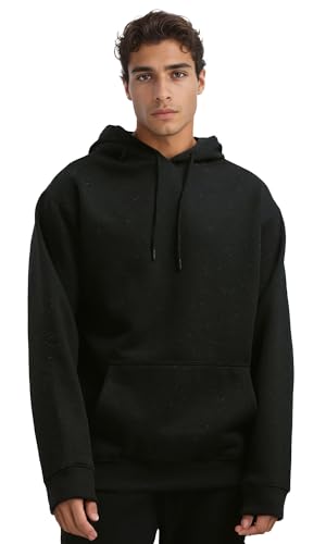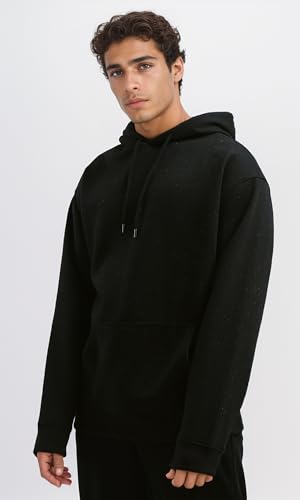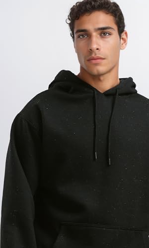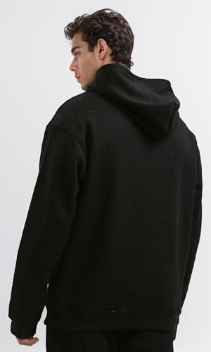 سويت شيرت رجالي بغطاء للرأس بأكمام تصل إلى الكوع منقوش بلون أسود من ريفين