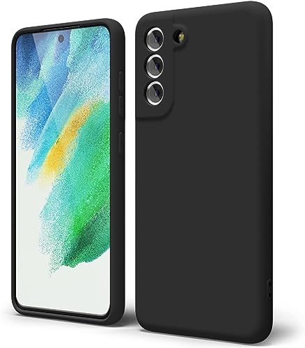 جراب حماية خلفي متوافق مع سامسونج جالاكسي S21 fe مصنوع من جل السيليكون الناعم والمطاط مضاد للصدمات بلمسة نهائية غير لامعة وبطانة داخلية القماش للكاميرات اسود