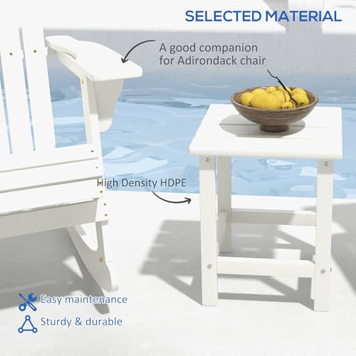 اوتسوني طاولة جانبية للفناء مربعة للاستخدام الخارجي مقاس 15 انش شاي بلاستيكية من البولي ايثيلين عالي الكثافة لكرسي اديرونداك والفناء الخلفي او الحديقة ابيض