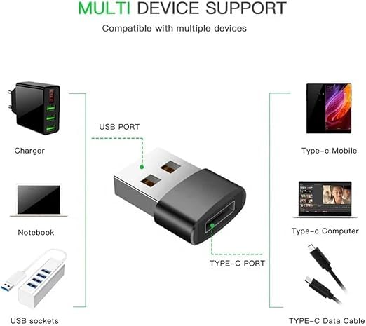 - استخدام مريح: يوفر محول USB-C إلى A مخرج 2 أمبير للشحن السريع وسرعة 480 ميجابت لكل ثانية لنقل الصور والبيانات الأخرى بسرعة بين الأجهزة. بالإضافة إلى ذلك، فإن هذه الوصلة صغيرة وخفيفة الوزن لوضعها في الشنطة عند السفر أو أثناء التنقل.