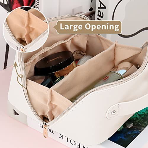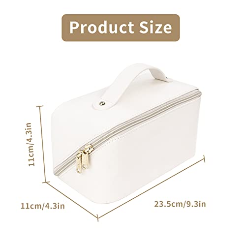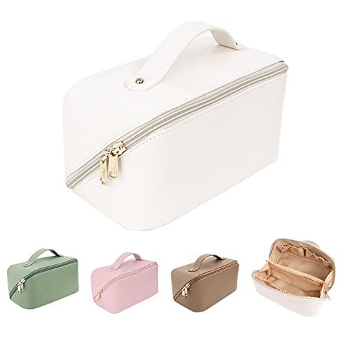 شنطة أدوات الزينة للنساء مكياج مقاومة للماء من البولي يوريثان مستحضرات تجميل للسفر والاكسسوارات والحمام لون أبيض سوشين جلد