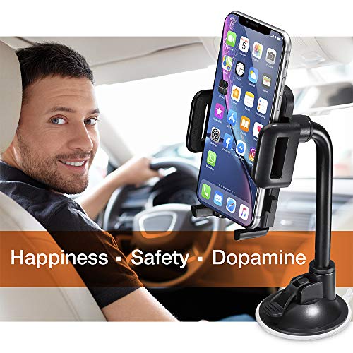 حامل موبايل ذكي وايفون عالمي لزجاج السيارة الامامي بانبوب 360، مثالي لاستخدامات الملاحة، مصمم برمز الدوبامين البرتقالي السري من داوسن