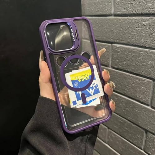 جراب موبايل مغناطيسي شفاف مع حماية عدسة الكاميرا لموبايل ايفون 15، حامل حلقي، ماج سيف متوافق مع ايفون 15 (ارجواني، ايفون 15)
