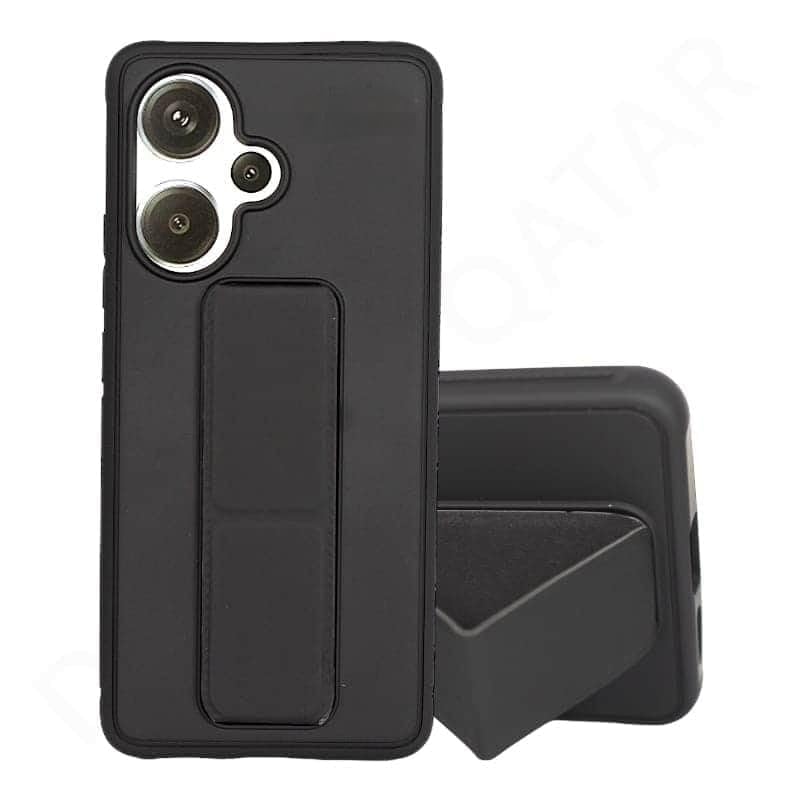 جراب خلفي بحامل مغناطيسي للسيارة من السيليكون الناعم بتصميم افقي ورأسي وحزام معصم للحماية الكاملة مضاد لبصمات الاصابع (اسود، ريدمي 13 4G)