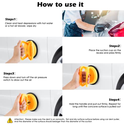 - 💪【إزالة انبعاجات السيارة بسرعة】تتضمن مجموعة إصلاح الانبعاجات مقاسين من أكواب الشفط، وتساعدك أداة سحب الانبعاجات بكوب الشفط على إزالة الانبعاجات الكبيرة والصغيرة من سيارتك. بعد الحصول على أداة إزالة الانبعاجات، يمكنك الرجوع إلى وصف المنتج أو مشاهدة الفيديو للتشغيل.