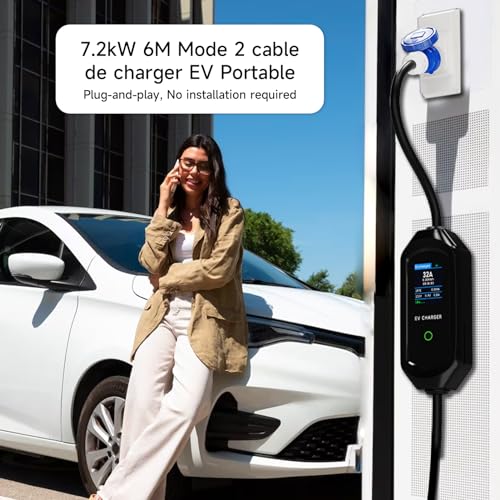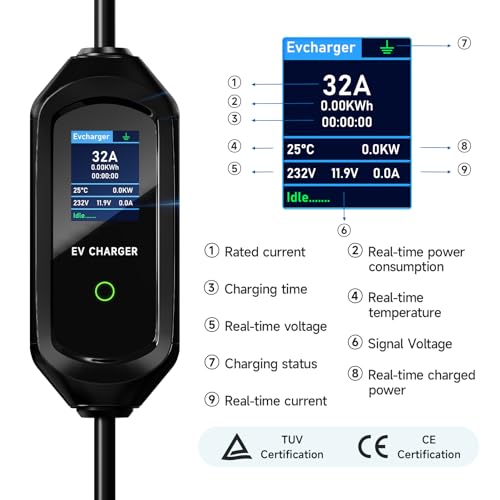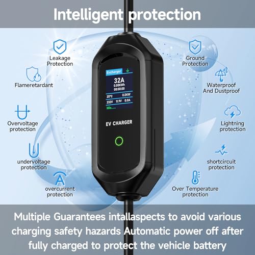 - وضع الشحن السريع: التيار القابل للتعديل لشاحن السيارة الكهربائي الخاص بنا هو 6A/8A/10A/13A/16A/20A/24A//32A، وطاقة الخرج 7.2 كيلو واط، أسرع من الشواحن التقليدية. يمكنك اختيار التيار وفقًا لحالة البطارية والمركبة. ملاحظة: لا يمكن تغيير التيار أثناء الشحن.
