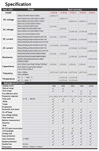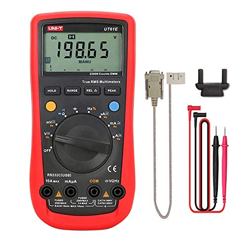 مقياس رقمي متعدد احترافي، جهاز اختبار، مقياس مدى تلقائي بقيمة جذر متوسط التربيع الحقيقي، سعة كبيرة 220 Mf، شاشة عرض 22000 رقمًا Ut61E+ من يوني-تي