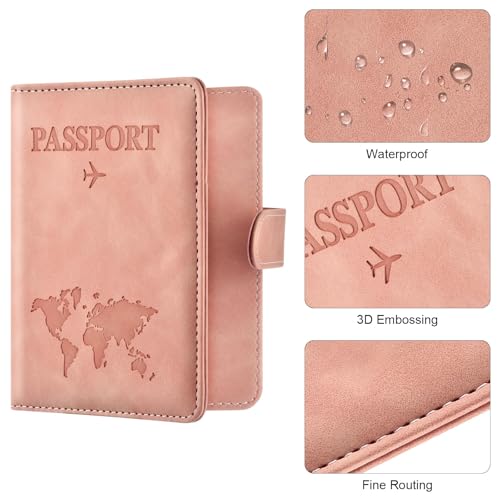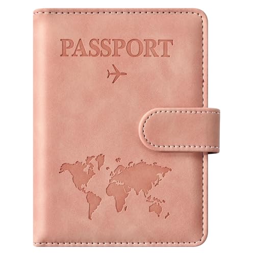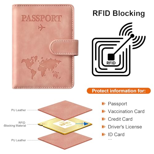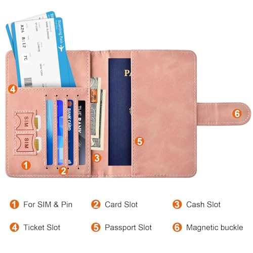 حامل جواز السفر بتقنية حجب تحديد الهوية بموجات الراديو، منظم وثائق السفر من جلد البولي يوريثين المضاد للسرقة مع تصميم خريطة وقفل مغناطيسي وفتحات للبطاقات من جولينياو (مغناطيسي، وردي)