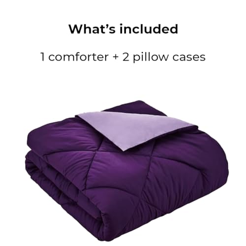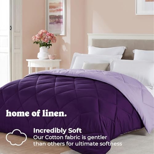 طقم لحاف ثقيل قابل للاستخدام على الوجهين من هوم اوف لينين، بحشوة بديلة، (للمرتبة 1.6/1.8 متر)، بالإضافة إلى 2 كيس مخدة (50×70 سم)، 3.6 كيلوجرام، 2.3×2.4 متر، لافندر × موف، قطن