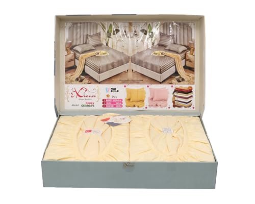 - الاكسلانس طقم 6 قطع، 2 ملاية مقاس 240×200 + 2 خدادية مقاس 60×70 + 2 مخدة مقاس 120×45، سادة قطن 100% معالج ب استيك، "ذهبي" - 17120