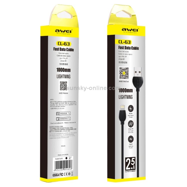 كابل شحنUSB - موديل CL-63- -شحن سريع- - يدعم جميع أجهزة- كابل بيانات سريع - 2.5A – اسود