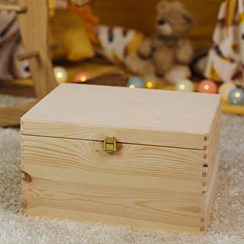 صندوق خشبي مع غطاء وقفل معدني من لاوبلاست، مقاس 40 × 30 24 سم | تخزين طبيعي متعدد الاستخدامات تذكار - للحرف اليدوية والهدايا، معتمد مجلس رعاية الغابات، صنوبر