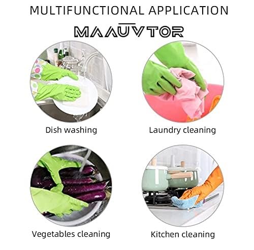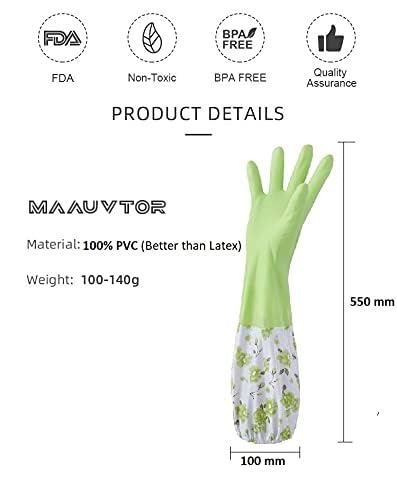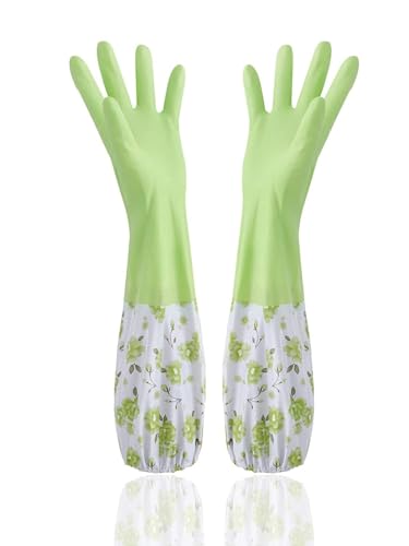 قفازات مطاط ولاتكس وبلاستيك بي في سي قابلة لإعادة الاستخدام مبطنة ومزودة بأكمام طويلة حتى الكوع لغسل الأطباق والتنظيف والبستنة والغسيل والصرف الصحي وأعمال المختبر من مايكروسوفت، زوج أخضر، عبوة واحدة