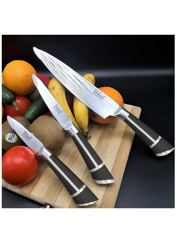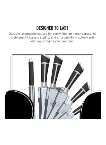 مجموعة سكاكين مطبخ من باس، مجموعة سكاكين شرائح اللحم وسكاكين ادوات المطبخ - حادة للغاية من الستانلس ستيل مرتفع الكربون مع مقابض مريحة (مجموعة من 7 قطع، اسود ايه)
