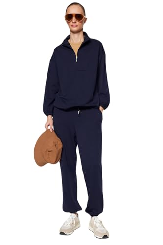 بدلة رياضية محبوكة بياقة واقفة وحافة مكشكشة للنساء من ترنديول، موديل TCTAW22EN0051