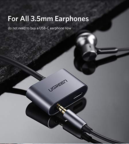 محول يو اس بي سي الى 3.5 ملم 2 في 1 من يوجرين، محول USB C الى سماعة الراس وشحن الصوت، شاحن سريع من الالومنيوم متوافق مع هواوي P30 برو P20 P20 برو ميت 20 برو، ون بلس 8/8 برو وشاومي مي 9/8