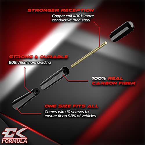 اريال بديل لسيارة الدفع الرباعي مقاس 4.7 بوصة من الالومنيوم ولفائف داخلية من النحاس بمسمار من الياف الكربون يتوافق مع راديو ايه ام/اف ام، امن عند غسيل السيارة، قطعة واحدة، لون اسود، من سي كيه فورميلا