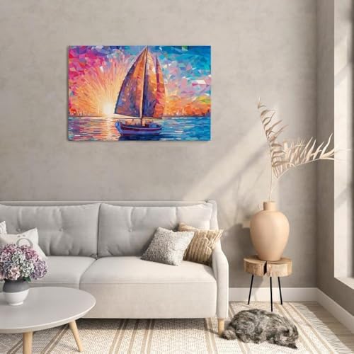 لوحة فنية جدارية قماشية مطبوعة بتصميم بحر ونمط غروب الشمس، مقاس 120 × 80، ملون