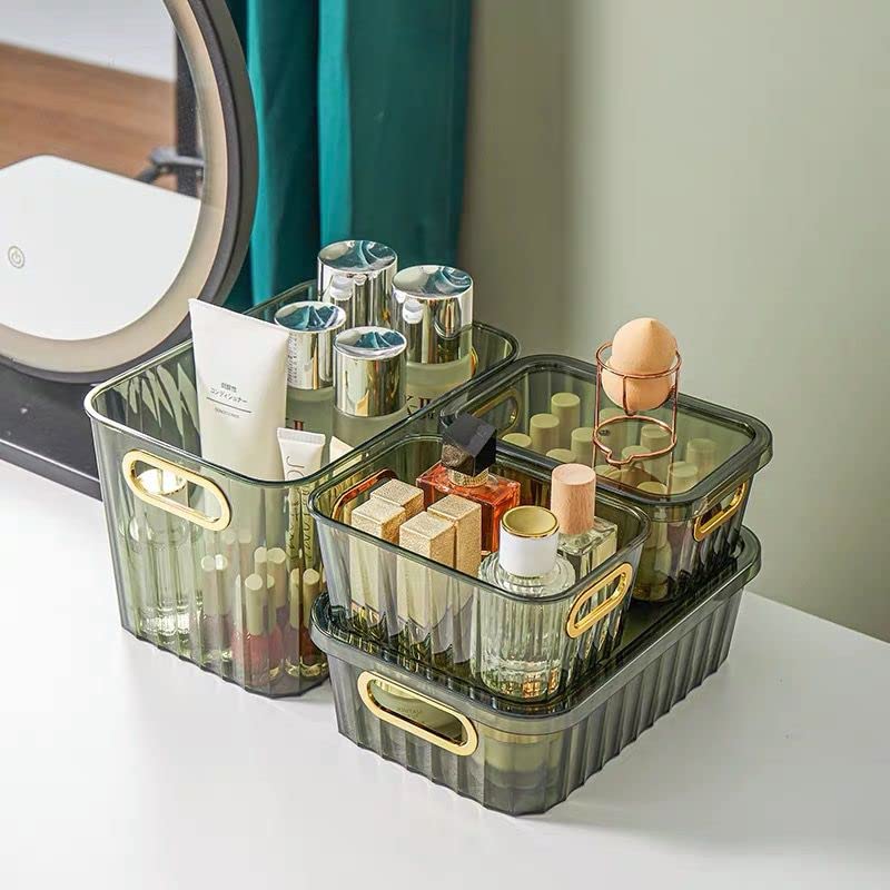صندوق تخزين اكريليك خفيف الوزن فاخر وقوي ومضاد للكسر ومتعدد الوظائف مع غطاء لتخزين اللانجيري والوجبات الخفيفة (لون اخضر شفاف، مقاس صغير)