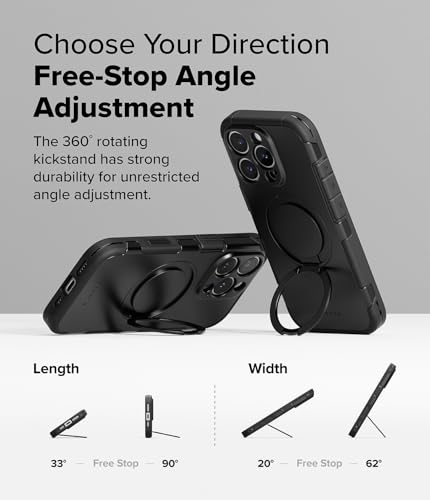 جراب حماية للموبايل اليس متوافق مع ماج سيف مع مسند مغناطيسي قوي بفتحات دقيقة لعدسة الكاميرا متوافق مع آيفون 16 برو ماكس من رينجكي، أسود