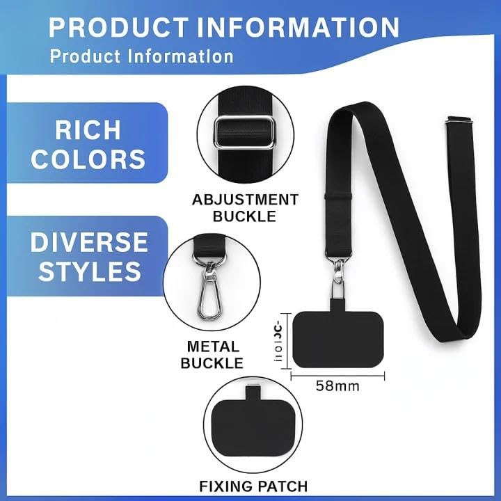 حبل عالمي للموبايل مع حزام رقبة نايلون قابل للتعديل مع معظم الموبايلات الذكية يمكن دمجه مع أي جراب موبايل من جولينياو