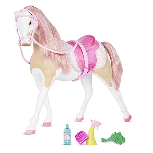 حصان بوني 14 بوصة بعرف وذيل بينك مع خصلات شعر فضية وسرج قابل للازالة وغطاء بطبعة زهور وملحقات للعناية – العاب للاطفال من سن 3 سنوات فاكثر من جليتر جيرلز