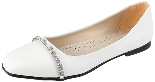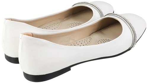 حذاء باليه فلات للنساء مغلق بكعب 1 سم بنعل مطاطي موديل R15-80، أبيض، 40 EU