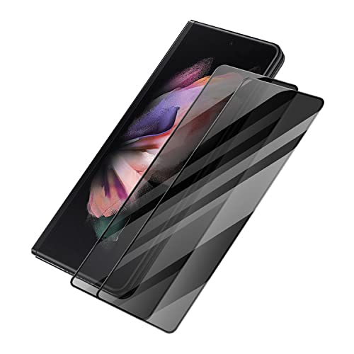 شاشة حماية من الزجاج المقوى مطفي لحماية الخصوصية لهاتف سامسونج جالاكسي زد فولد 3 شبكة الجيل الخامس 5G، قطعتان من شاشة الحماية الأمامية (الخارجية) تغطية كاملة من اهيرلسي، لون الأسود