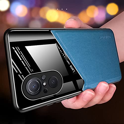 - [تصميم مميز]: الغطاء مصنوع من الجلد الصناعي وزجاج بليكسي، يحيط الزجاج بمنطقة الكاميرا والجلد في النصف السفلي من الموبايل. سيشعرك التصميم المميز بالفخامة ويمتاز بملمسٍ رائع في اليد.