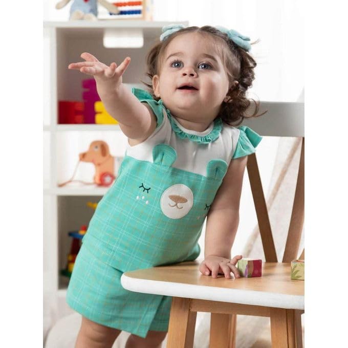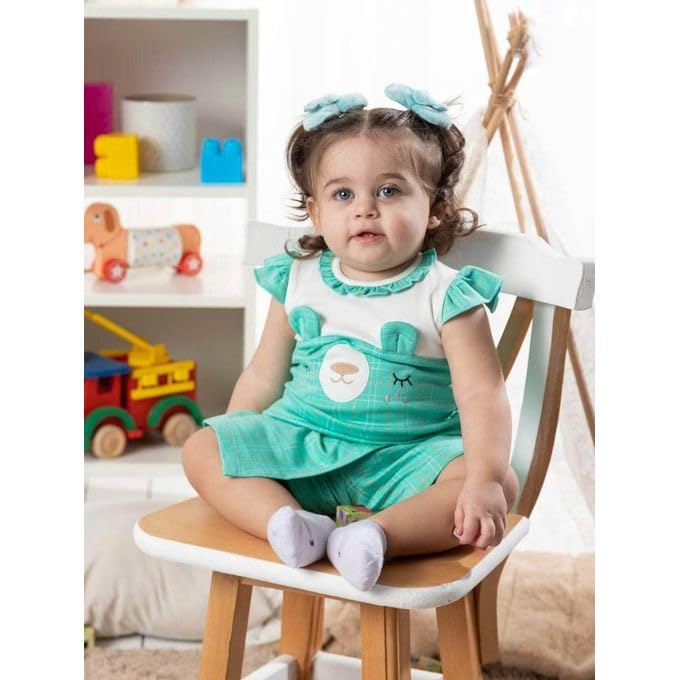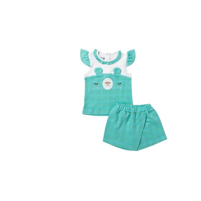ملابس اطفال - طقم بناتى جيب شورت شيك جدا, قطعتين , فيروزى (6 شهور))