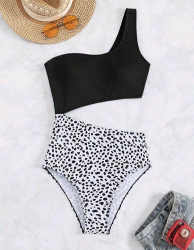 مايوه حريمي بدلة سباحة من قطعة واحدة بحمالة كتف واحدة وطبعة دالماتية صيفية