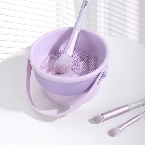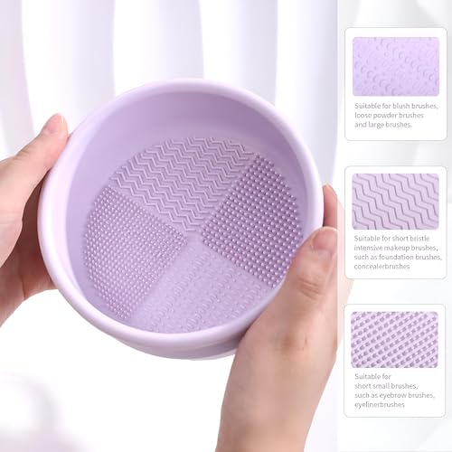 منظف فرش المكياج - استكشف وعاء التنظيف المبتكر المصنوع من السيليكون والذي يوفر حلاً 3 في 1 لتنظيف وتجفيف وفرك فرش المكياج والإسفنج بسهولة وكفاءة. (بنفسج)