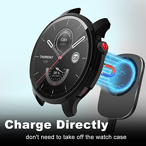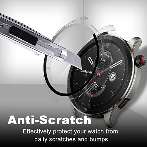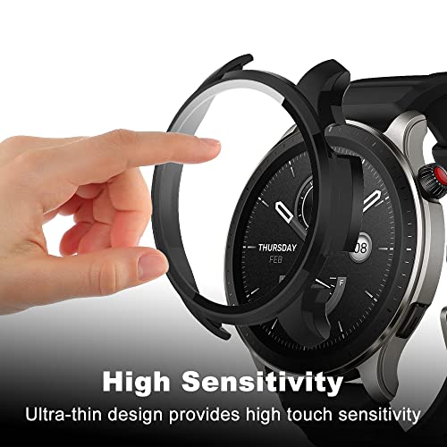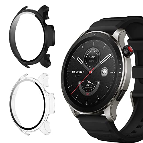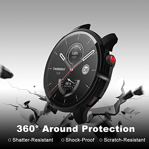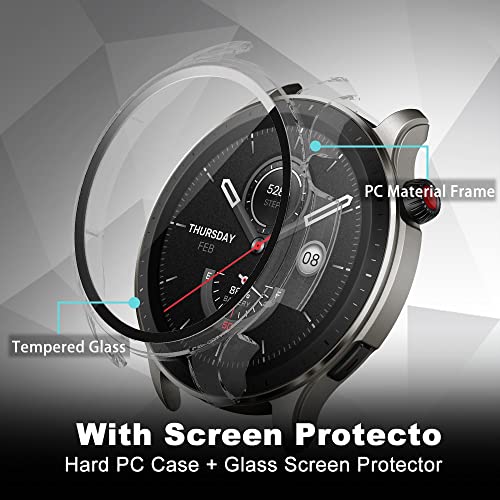 جراب حماية من كيفوس متوافق مع امازفيت GTR 4 صلابة 9H 360 درجة الزجاج المدمج غطاء واقي شاشة البولي كربونات مقاوم للخدش لساعة اسود + شفاف