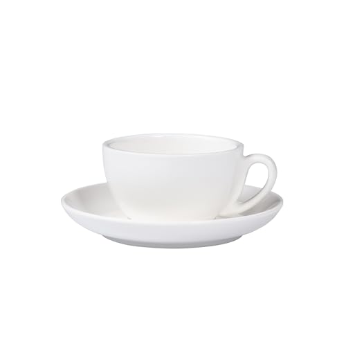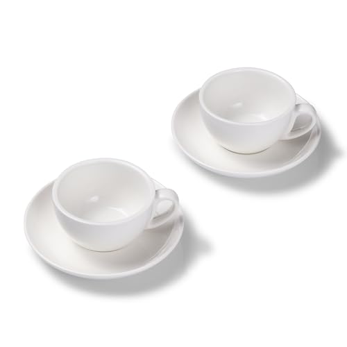 طقم من 2 كوب كابتشينو - أبيض تيرا هوم، 200 مل، لامع، بورسلين، جدران سميكة، آمن للاستخدام في غسالة الصحون، تصميم إيطالي - فناجين قهوة مع صحون