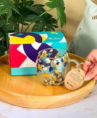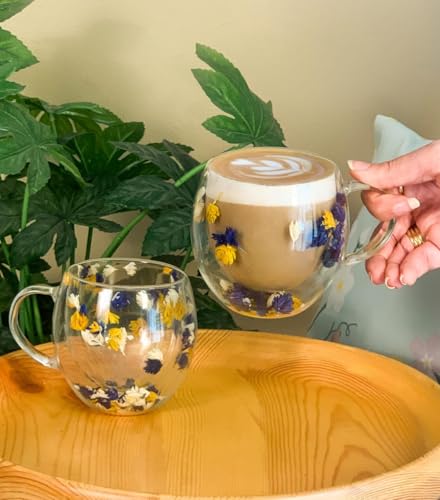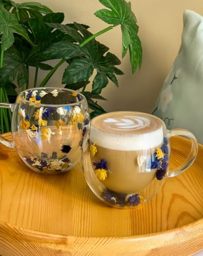 - كوب بمقبض من زجاج الزهور الشفاف - مع "جيب هوائي" معزول حرارياً للحفاظ على المشروبات أكثر دفئًا لفترة أطول، مع كونه باردًا للإمساك به من الخارج