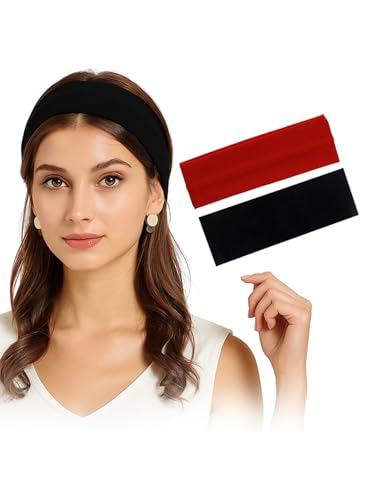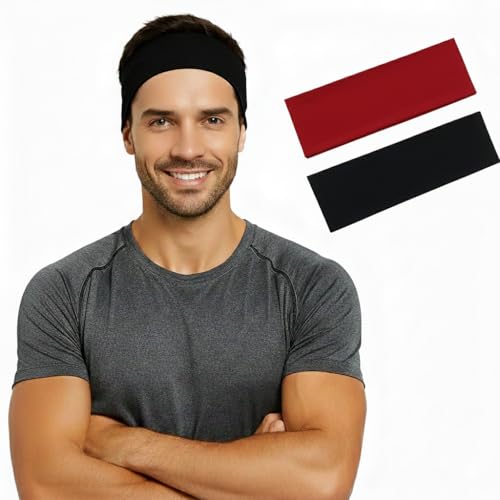 شريط رأس رياضي للنساء والرجال من القطن المصري بنسبة 95%، أربطة للرأس للتمارين الرياضية للجري والارتداء اليومي، عبوة من قطعتين
