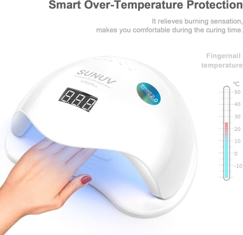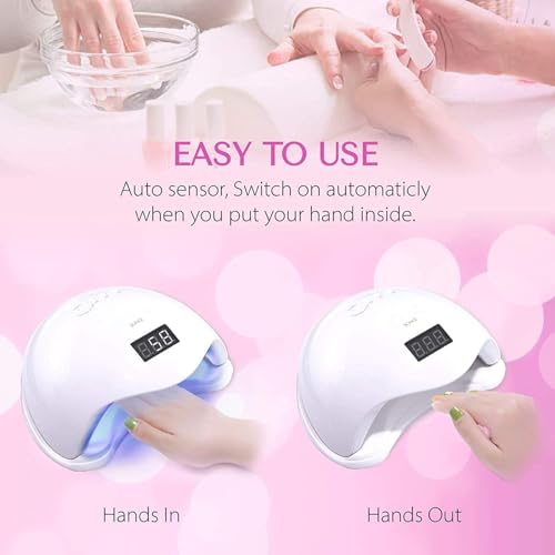 مجفف أظافر ليد بالأشعة فوق البنفسجية بقدرة 48W مصمم مع 4 مؤقتات ومستشعر تلقائي وشاشة ال سي دي لتجفيف طلاء الجل والاستخدام الاحترافي والمنزلي كاكسسوار أساسي لصالونات وفن الأظافر