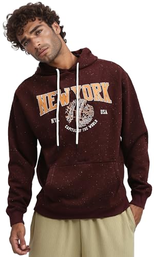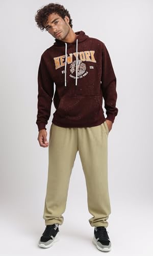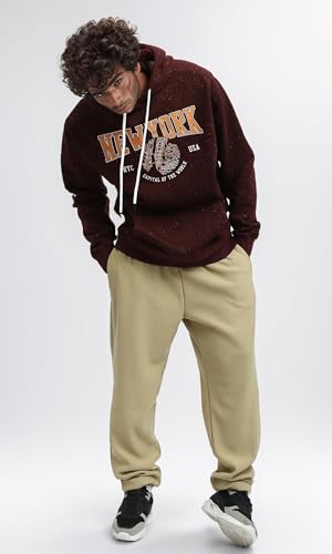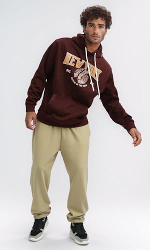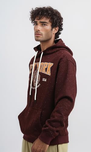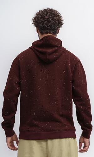 سويت شيرت بغطاء للرأس من ريفين للرجال لون بورجندي مع رباط أبيض