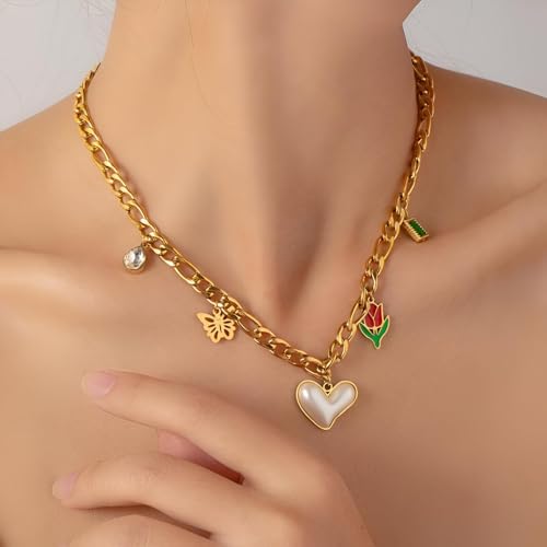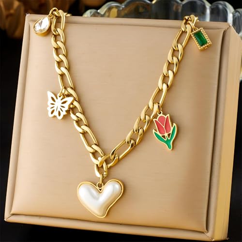 عقد ذهبي رائع على شكل قلب للنساء، مثالي للاحتفال بعيد الحب، اختيار المجوهرات يوميًا إلى الليل
