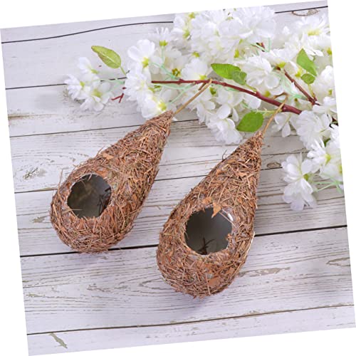 أعشاش معلقة للطيور مصنوعة من القش مناسبة للاستخدام الخارجي وتمتاز بتصميم نباتي، أعشاش مناسبة للأقفاص والنوافذ وطيور الطنان من فوميز، قطعتان