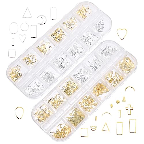 فوميز. صندوقان لتزيين الاظافر يمكنك صنعه بنفسك لتزيين اظافر الاصابع المجوفة والملصقات، ملصقات مربعة على شكل حرف D بتصميم عصري ودائرة ذهبية ومزينة بالترتر للفتيات، تعليقة اظافر فضية