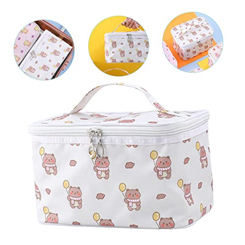 شنطة تخزين ادوات الزينة للنساء، شنطة ادوات الزينة للنساء، شنطة تنظيم مستحضرات التجميل، شنطة تنظيم المكياج، شنطة تخزين بيضاء عالية السعة من البوليستر للسفر، ابيض، 22 × 16 سم، للرياضة، من فوميز.