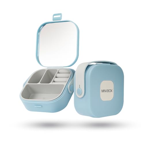 صندوق صغير - شنطة تخزين أكسسوارات محمولة بمقبض ومراية مدمجة (أزرق سماوي)