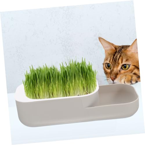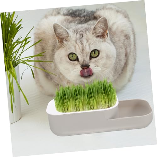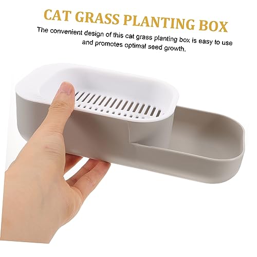 فوميز. صندوق زراعة عشب القطط في الحضانة، صندوق زراعة عشب القطط للمنزل - وعاء زراعة عشب بدون تربة من البلاستيك النظيف بدون تربة، رمادي فاتح