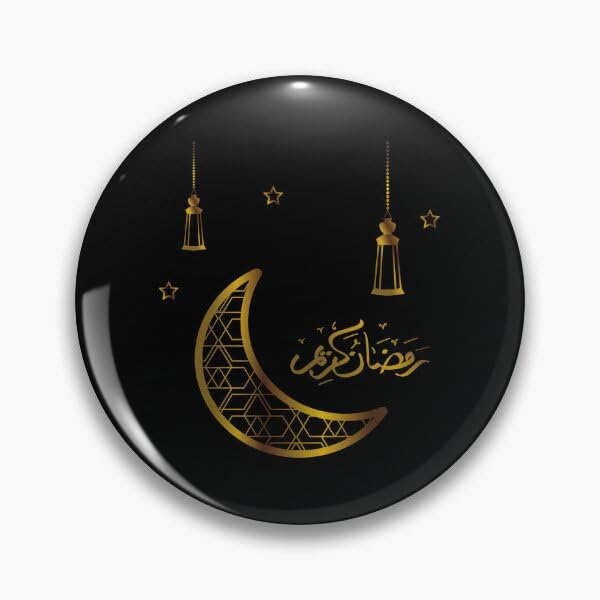 دبوس زينة لرمضان كريم من اس ام 4 يو، تصميم قمر أسود وذهبي، 3 سم