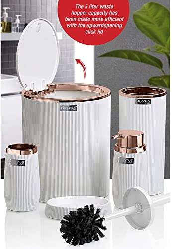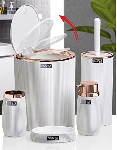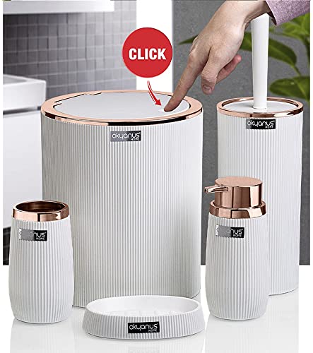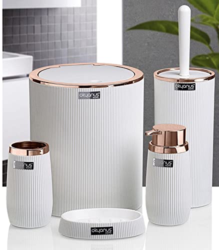 - طقم حمام منزلي بتصميم دائري مخطط من اوكايانوس، 5 قطع، لون نحاسي وأبيض