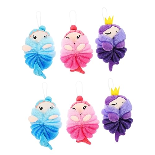 فوميز. 6 قطع من كرات الاستحمام الاسفنجية الدوامة المنزلية على شكل حيوانات ايسبونجا بارا بانارس، ليفة الاستحمام، مستلزمات التنظيف، ليفة حمام، لوفة، لوازم استحمام شبكية، حورية البحر او لطيفة، 6 قطع