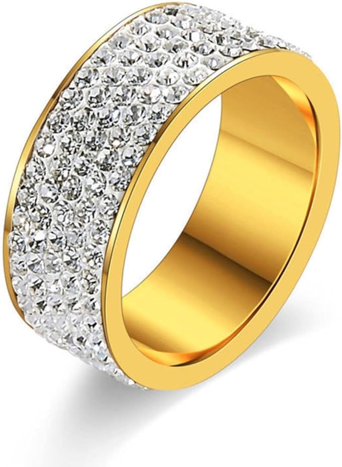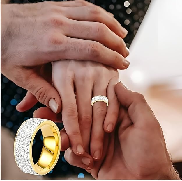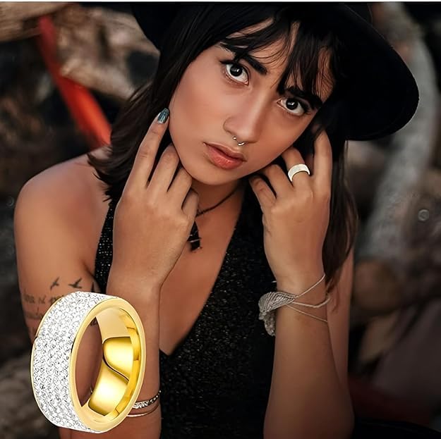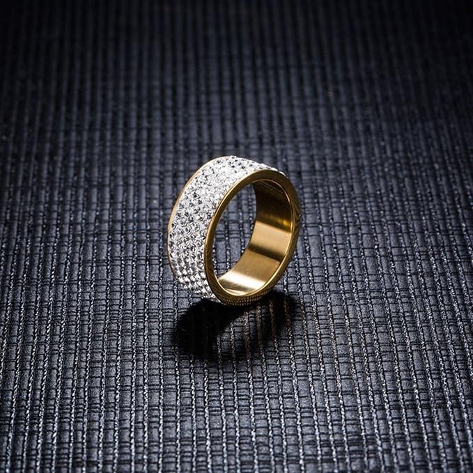 1 قطعة خاتم أنيق من ستانلس ستيل مطلي بالذهب عيار 18 قيراط المقاوم للصدأ مع حجر الراين المرصع، مجوهرات إكسسوار رائعة للرجال، للارتداء اليومي للنساء . من فيروز جوليري