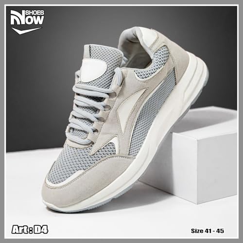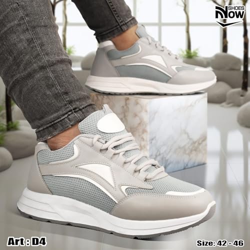 حذاء كاجوال D4 للرجال من ناو، مصنوع من الجلد والشموة، لون رمادي مقاس 44